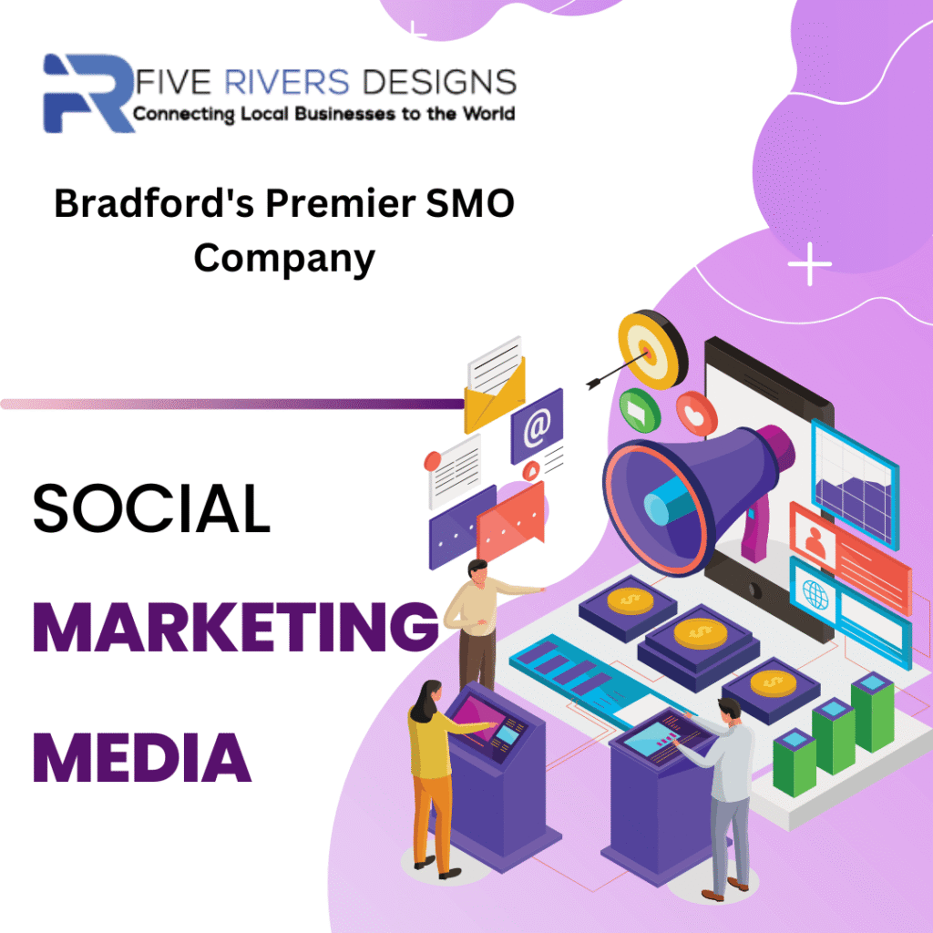 Unleash Bradford's Social Potential with Five Rivers Designs: Premier SMO Services. Amplify your brand's reach and captivate audiences through our expert social media strategies. Let us take your online presence to new heights, ensuring your dominance in the digital landscape.